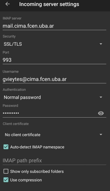 - Servidor IMAP: mail.cima.fcen.uba.ar
