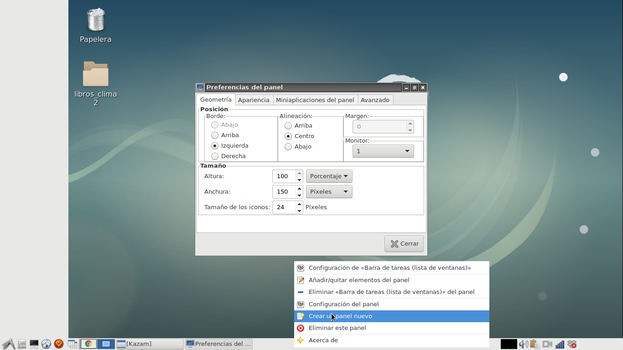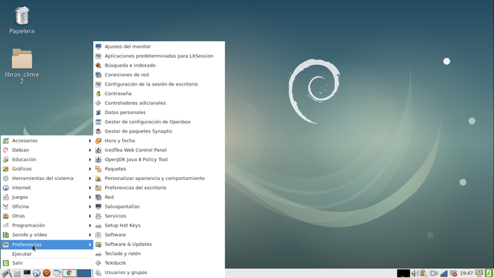 Podemos cambiar el fondo de pantalla a través del botón drch. del ratón y con el menú preferencias.