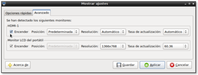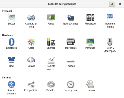 También se puede acceder a través del botón "configuración" en el submenu que se despliega al darle a la flecha arriba a la derecha del panel superior.