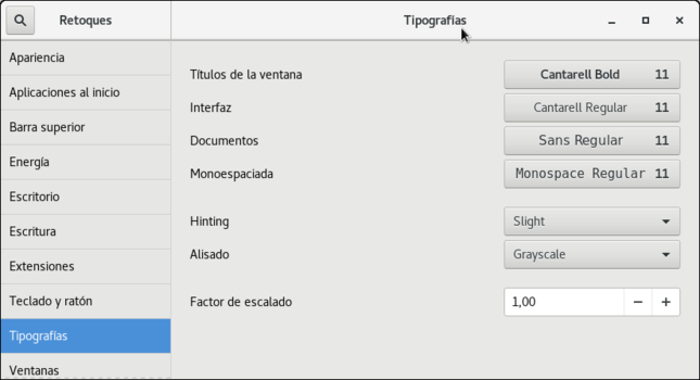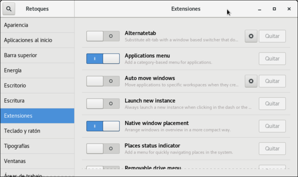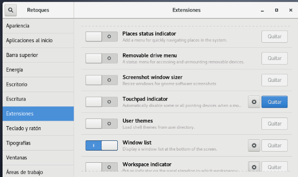 Ventanas: Aqui podremos cambiar su comportamiento. Un ejemplo es que por defecto GNOME no viene con los botones "maximizar o minimizar". En esta sección podremos cambiar en la parte Botones de la barra de titulo