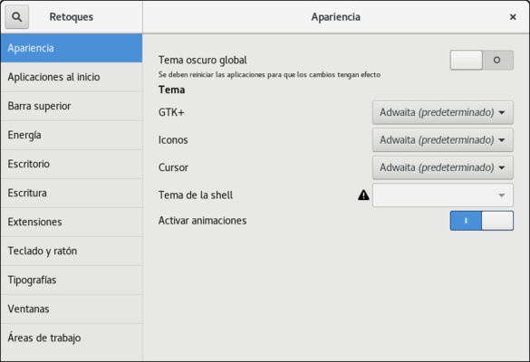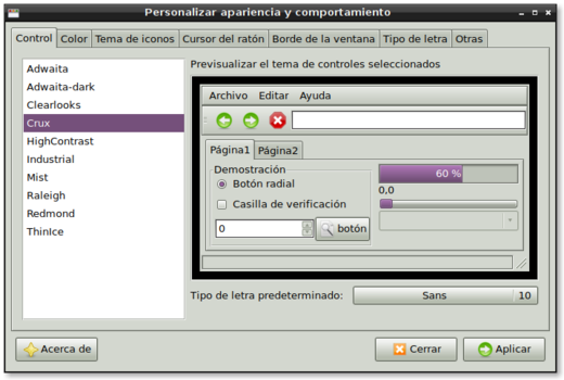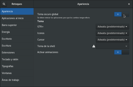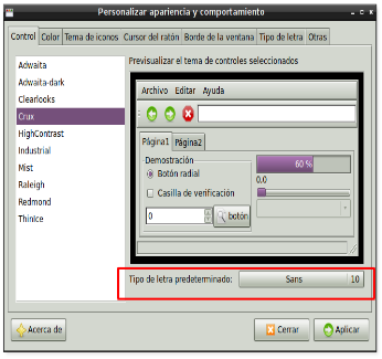 Se puede cambiar el aspecto general de la interfaz a través de los temas. Por defecto tanto en GNOME como en LXDE vienen instalados 3 o 4 temas. Además GNOME da la opción de usar la variante "oscuro global" en su temas.