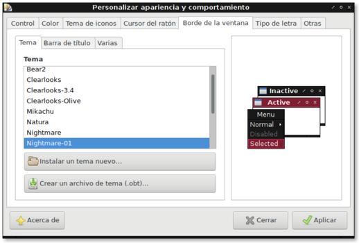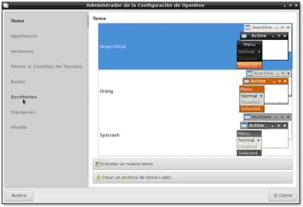 Inicio | Preferencias | Gestor de Configuración de OpenBox | Tema