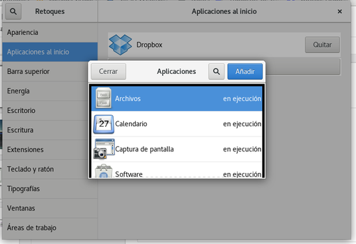 En esta sección podemos configurar las aplicaciones que se inician automáticamente al iniciar la sesión.