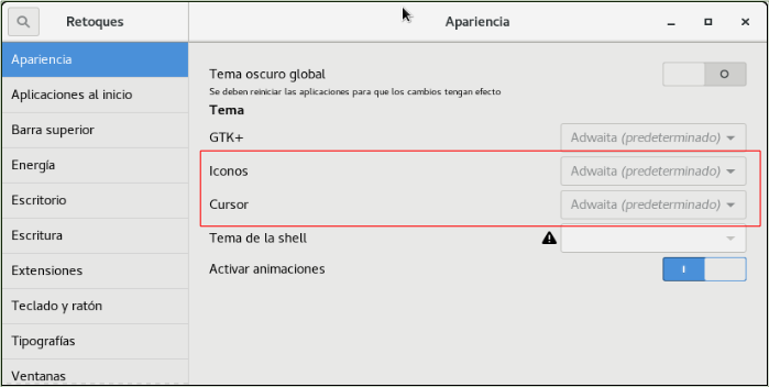A parte de poder elegir un tema general para la interfaz, también se pueden modificar las estetica y el comportamiento de las ventanas, el ratón , cambiar las tipografias o los iconos.