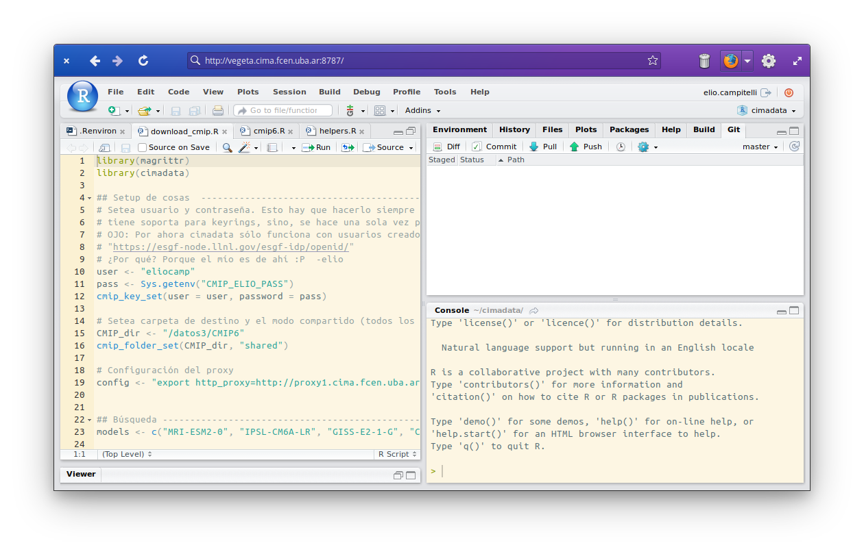 | 19:17 27 may 2020 | 1260 × 809 (184 kB) | Elio.campitelli (discusión | contribs.) | Ventana principal de Rstudio server |